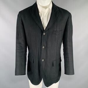 necktie in a blue and orange silk featuring a seascape pattern with boats. Made in Italy.Excellent Pre-Owned Condition.