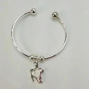 Fun bull and cowboy pendant on a silver bracelet in silver toned metal