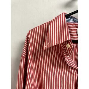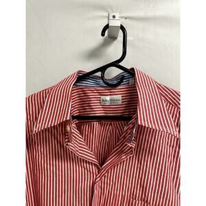 BULLOCK & JONES Men's Button Down Work Shirt XXL Striped Long Sleeve Red White