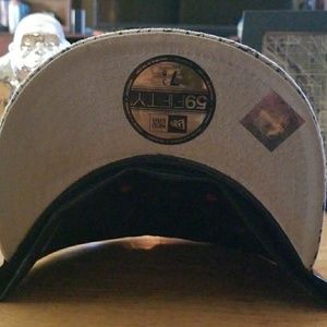 Really awesome hat. One of my favorites. Wool/Faux leather with the Red Windy City BULLS logo. Elephant print bill . Some stain from wearing.