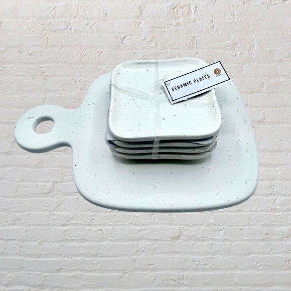 Target Bullseye's Playground White Speckled Ceramic Cheese Board and 4 Plate Set
