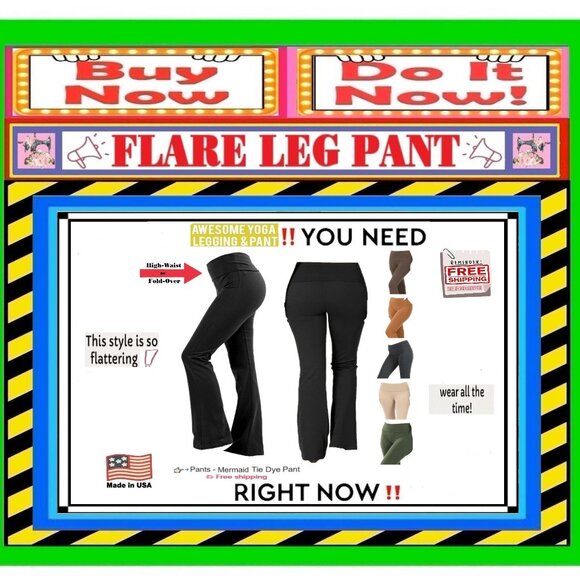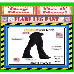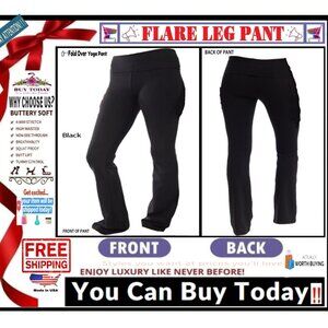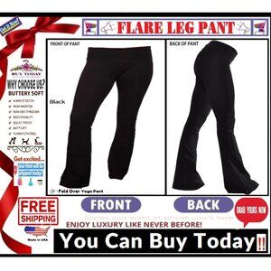 📢 BULLY High Waist➕🆒 LEGGING PANT Fold Over FLARE LEG Solid Stretch💸BUY NOW‼️