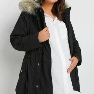 BUMP IT UP MATERNITY Black Fur Trim Parka, Size US 22-24