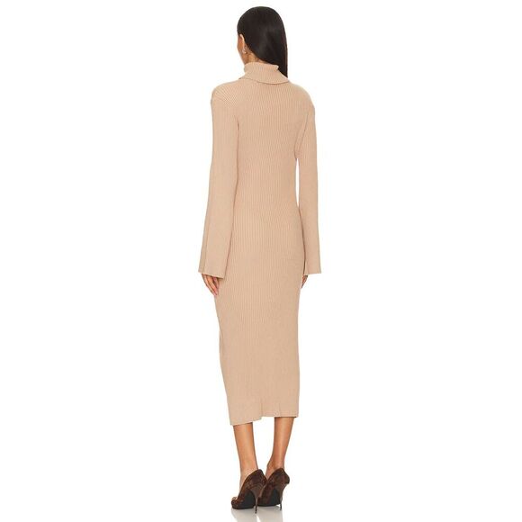 BUMPSUIT Maternity Beige Tan Ribbed Turtleneck Long Bell Sleeve Midi Dress Small