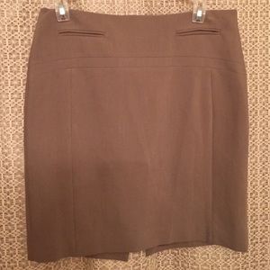 Express dark gray work skirt and tan skirt , above knee length, small slit in back, worn only a couple of times