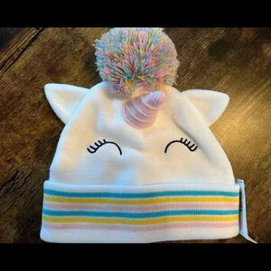 BUNDLE: 2 Old Navy animal stocking hats for kids. 1- pink koala bear hat with pom-pom ears, size M. 1- white unicorn hat with small pink horn and multi-colored pom on top. . Brand new, with tags. NWT. Cute, girls hats. Size: M kids. Per Old Navy (Per Old Navy sizing: ; S= 12-24 months; M= 2T-3T.) sizing, fits head circumference size 20.5” which is a 2T. This is a knit stretchy hat, however.