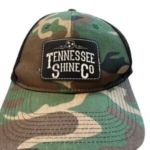 Camouflage Hat by Port Authority with black mesh and snapback. Tennessee Shine Co label on front.
