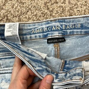 2) AE light wash distressed hi-rise shortie shorts size 4