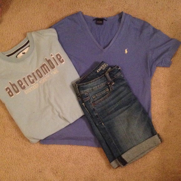 never worn american eagle shorts size 00. Abercrombie shirt size large . and Ralph Lauren polo v-neck shirt size large.
