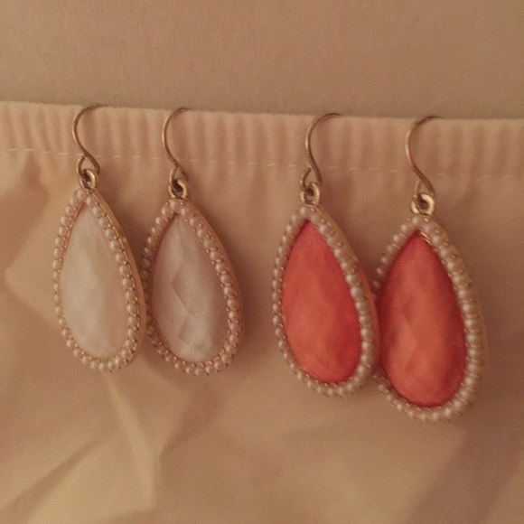 Pink & white teardrop-shaped earrings. Very pretty and classy!