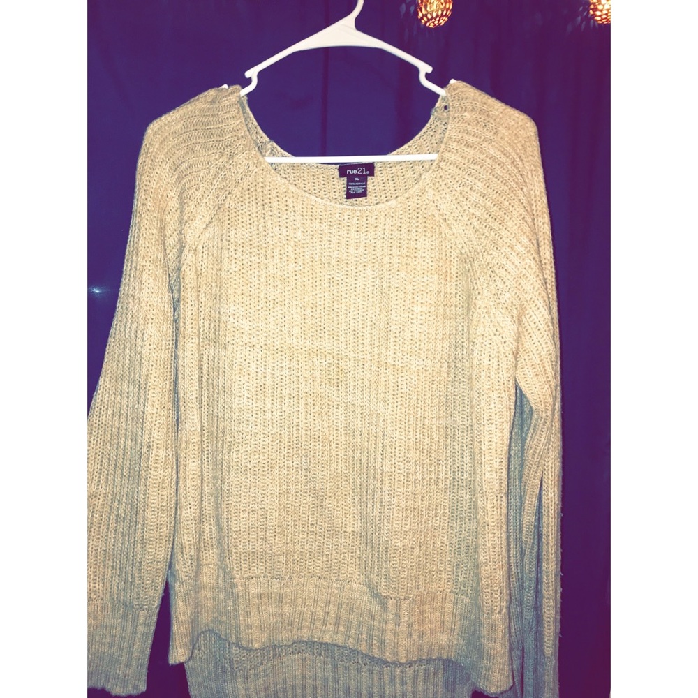 I am selling this tan sweater that worn for any occasion. And also selling this long sleeve Garnet color shirt that ties up crisscross in the cleavage area