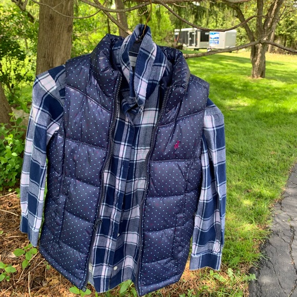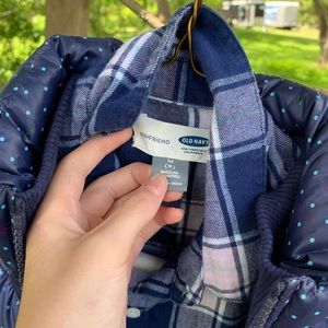old navy flannel with cute polka dot vest