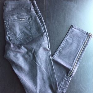 2 pairs of William Rast skinny jeans (Justin Timberlake's brand). The black jeans are size 23 & have a zippered ankle for that tight tapered look. The blue jeans are size 24 & have a vintage distressed look.