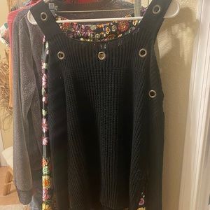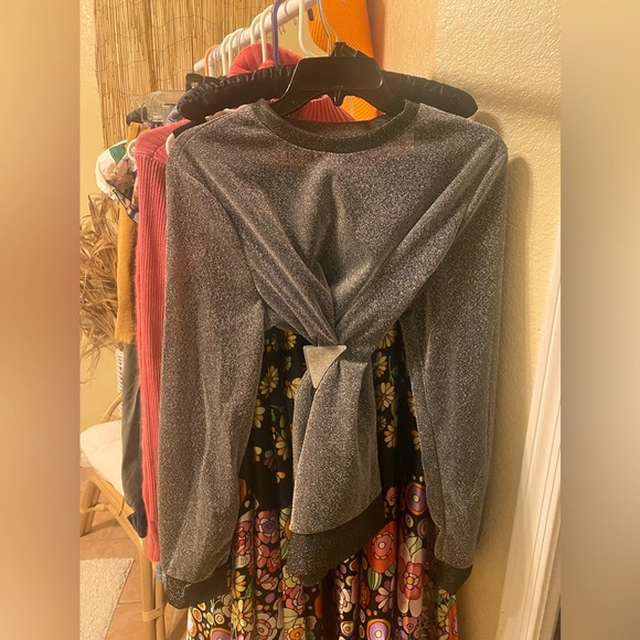we got our long flowing flower skirt made in India, a glitter, fun, dinner or club top and a cotton acrylic sweater top that shows your shoulders with metal rings … Fun fun 🥳