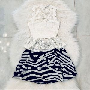 This gorgeous bundle skirt and blouse set can be worn two ways. With the peplum blouse over the skirt band or tucked inside the skirt band. Very elegant pieces, and the blouse is super soft. Will fit XXS and 00 too!