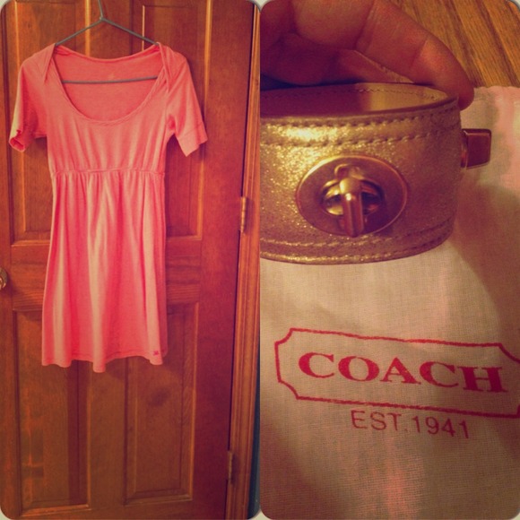 Does the bracelet come with the Coach bag its sitting on? What is the brand of the dress & the size of the dress & the material of the dress? Thank You! :-)