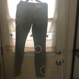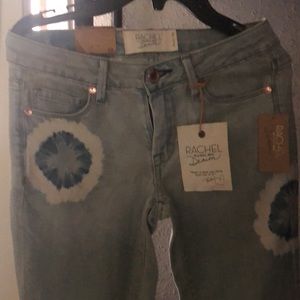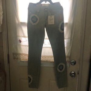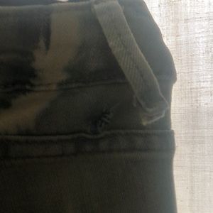 Skinny jean in tie dye. Button and zipper in the front.skinny, mid-rise