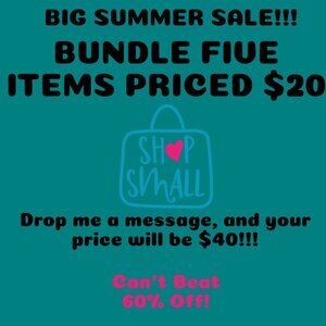 BUNDLE FIVE ITEMS MARKED $20, SEND ME A MESSAGE, AND I WILL SEND YOU AN OFFER FOR $40!