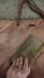 Wallet is a studded wallet on bottom. It is canvas with a bottom that's leather and studded which is super chic! Canvas is worn some, as pictured. Interior is leather on left and has eight card slots. Right has three bill fold pockets and zipper pocket for coins and miscellaneous items. Closure is a snap button that works great! Please see pictures and video to get better idea of condition.