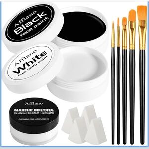 Black & White Face Paint Kit – Large 50g Oil-Based Grease Makeup Jars with Remover, 5 Brushes & 4 Sponges – Halloween, Cosplay & Stage SFX Makeup Set(10$)