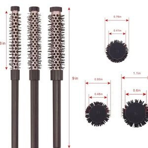 PERFEHAIR 3-Piece Small Round Brush Set (11, 13, 16mm) for Short Hair, Bangs & Roots | Mini Hairbrush for Blow Drying, Volumizing & Smoothing Blowouts | Soft Bristle Roller Brush for Fine, Thin Hair