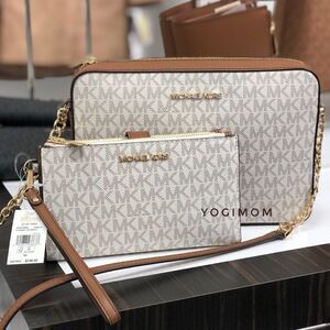 BUNDLE MICHAEL KORS Jet Set Large Vanilla MK Logo East West Xbody Phone Wallet