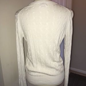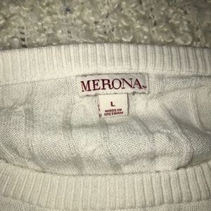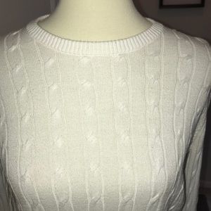 Size L White cable cotton sweater by Merona from Target. Pre owned condition with some pilling and discoloration under the arm as shown in pictures. Great bundle piece!