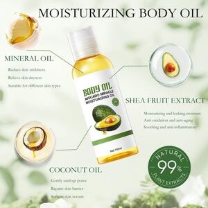 Avocado Moisturizing Body Oil for Dry Skin Skincare, Natural Radiant Hydrating Bath & Massage Oil, Radiant Looking Glow Skin Hydration, Lightweight Formula Fast Absorbing, 3.38 Oz