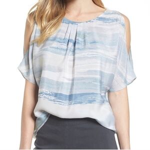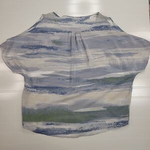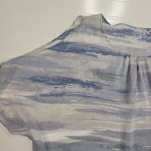 Blue and white tie dye short sleeved tops. Missing brand labels but they are both by Nic & Zoe. 75% silk 25% viscose, hand wash cold. Missing size tag, listed as medium but please refer to measurements.