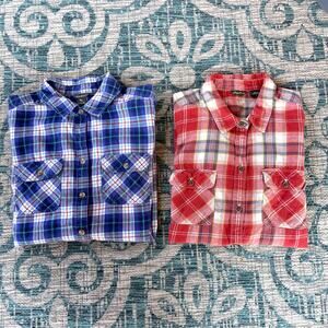 BUNDLE OF 2! Eddie Bauer Flannel Shirt Checkered Red & Blue - Size M