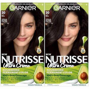 Garnier Hair Color Nutrisse Nourishing Creme, 20 Soft Black (Black Tea) Permanent Hair Dye, 2 Count - BRAND NEW IN BOX NEVER OPENED