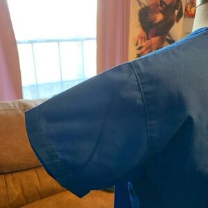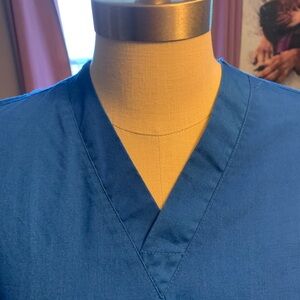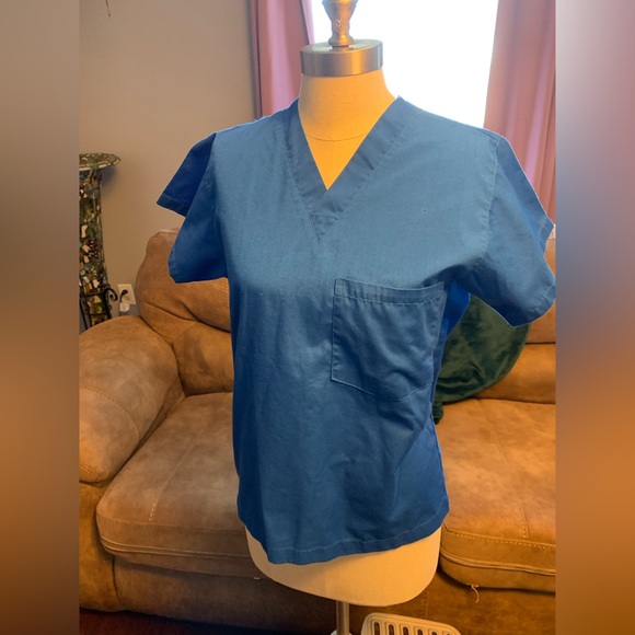 Unisex scrub top in a vibrant blue. Perfect for medical professionals. Size is xsm, light blue, the tags maybe worn out but the scrub tops are still in excellent condition.