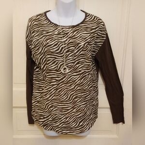 🛍️ BUNDLE ONLY 🛍️MICHAEL Michael Kors Cream and Brown Graphic Blouse