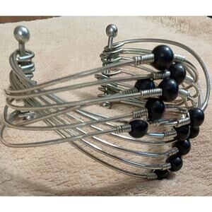 BUNDLE ONLY New Silvertone Black Beaded 2.5" Cuff Bracelet Jewelry