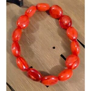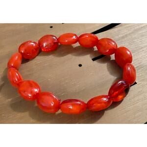 Vtg Beads Beaded Bracelet Stretch Red Orange Marbled