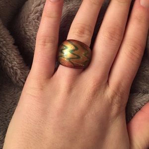 4 rings for the price of one! Plus a free Suprise ring as a gift. 2 of the rings stretch to your size while the silver triangle ring and green zig zag over the gold painting rings are both a size 7😄