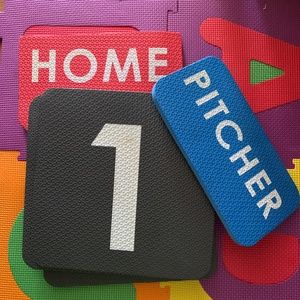 Diamond Gear little slugger trainer glove, right hand thrower. New without tags. Bat has been used along with foam all bases, pitcher/home set, good as new. Nerf football shows some wear.