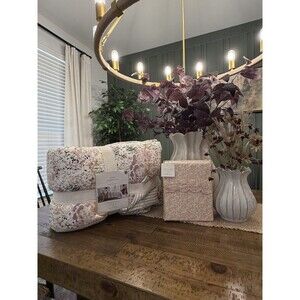 BUNDLE Studio McGee Queen Bedding Reversible Floral Comforter& Scalloped Sheets