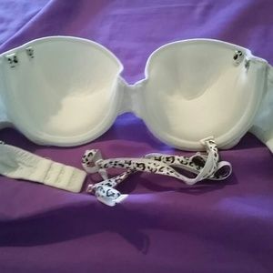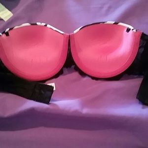 Both 34c, the zebra on is strapless and the cream one has cheetah straps, both push ups