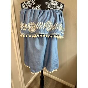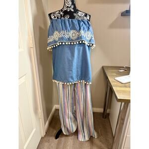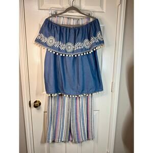 You'll love this beautiful bundle featuring wide-leg pants by Indigo Rein and an embroidered chambray top! The top is so versatile and can be worn on or off the shoulder, giving you multiple stylish options. Both items are in excellent used condition, ready to become staples in your wardrobe.