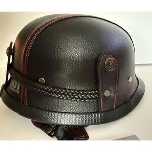 Motorcycle Half Helmet Retro German Handmade Leather Half Face Quick Release Buckle & Goggles - DOT Approved. Made with Acrylonitrile Butadiene Styrene (ABS)