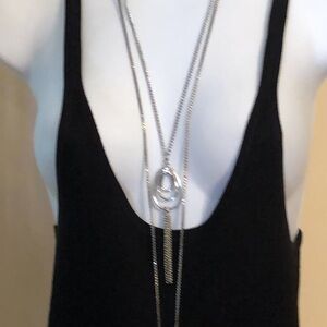 BUNDLE lot 2 silver tone long tassel necklaces statement extra long