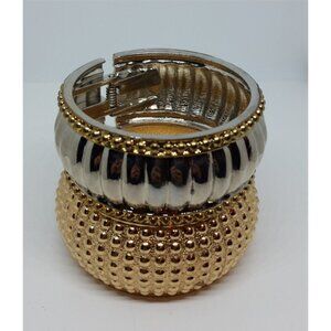 Gold tone, silver tone clamper bangle bracelets. Around 7.5 wrist size.