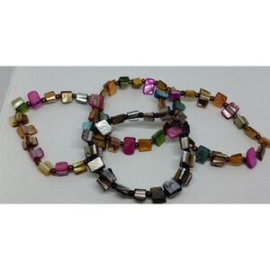 Bundle lot 4 colorful vibrant mother of pearl shell stretch bracelets and natural abalone shell bracelet, stretch.
