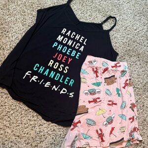 Set 2, FRIENDS theme, shorts and short sleeve top.