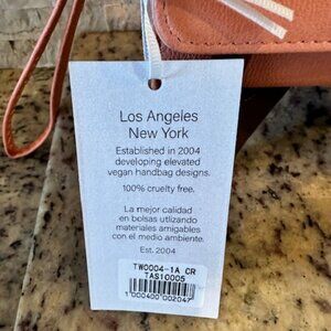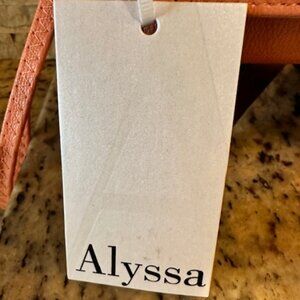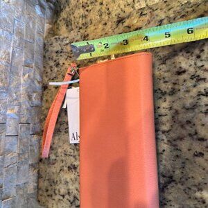1 ALYSSA Vegan Leather Peach Wristlet/Wallet/Clutch with gold accent bow (NEW WITH TAGS)-see dimensions in photos