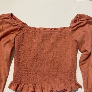 BUNDLE of Two Long Sleeve Off Shoulder Cropped Ruffle Smocked Blouses Size Small