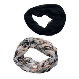 BUNDLE (2) Infinity Scarfs — One Patterned & One Solid Black