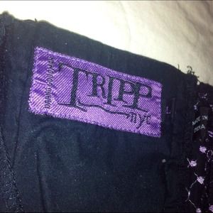 Purple & black lace up corset. It zips up the side and laces up the back, so even though it's a large, it'd fit M-XL. Super cute with ruffles along the top & bottom.