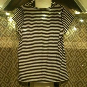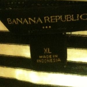 This shirt is either dark navy blue or black with white stripes. Has a classy look! It is a little faded under the arms but is still in good condition.